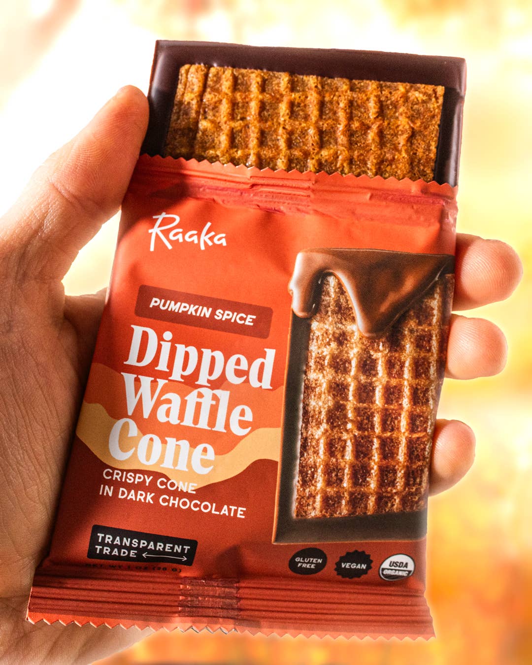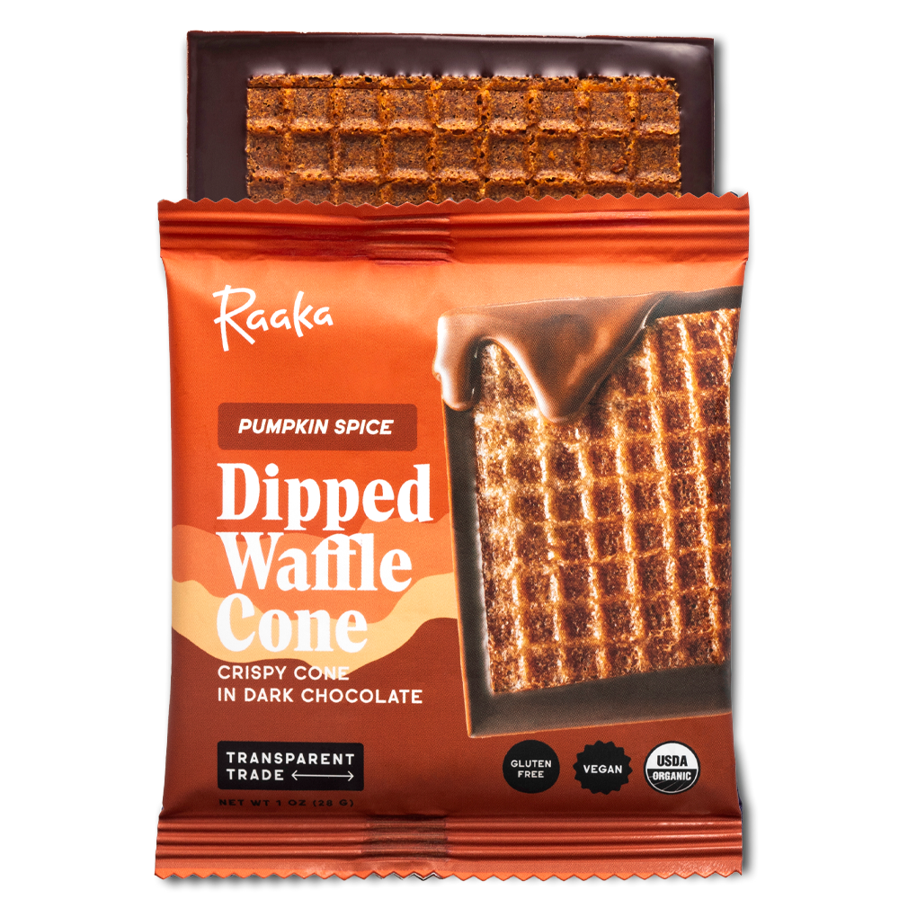 NO GOURDINARY CANDY Our limited batch pumpkin and spice infused Fall edition of our waffle cone chocolate is here! A crisp gluten-free, housemade, whole-grain pumpkin & spice waffle cookie set...