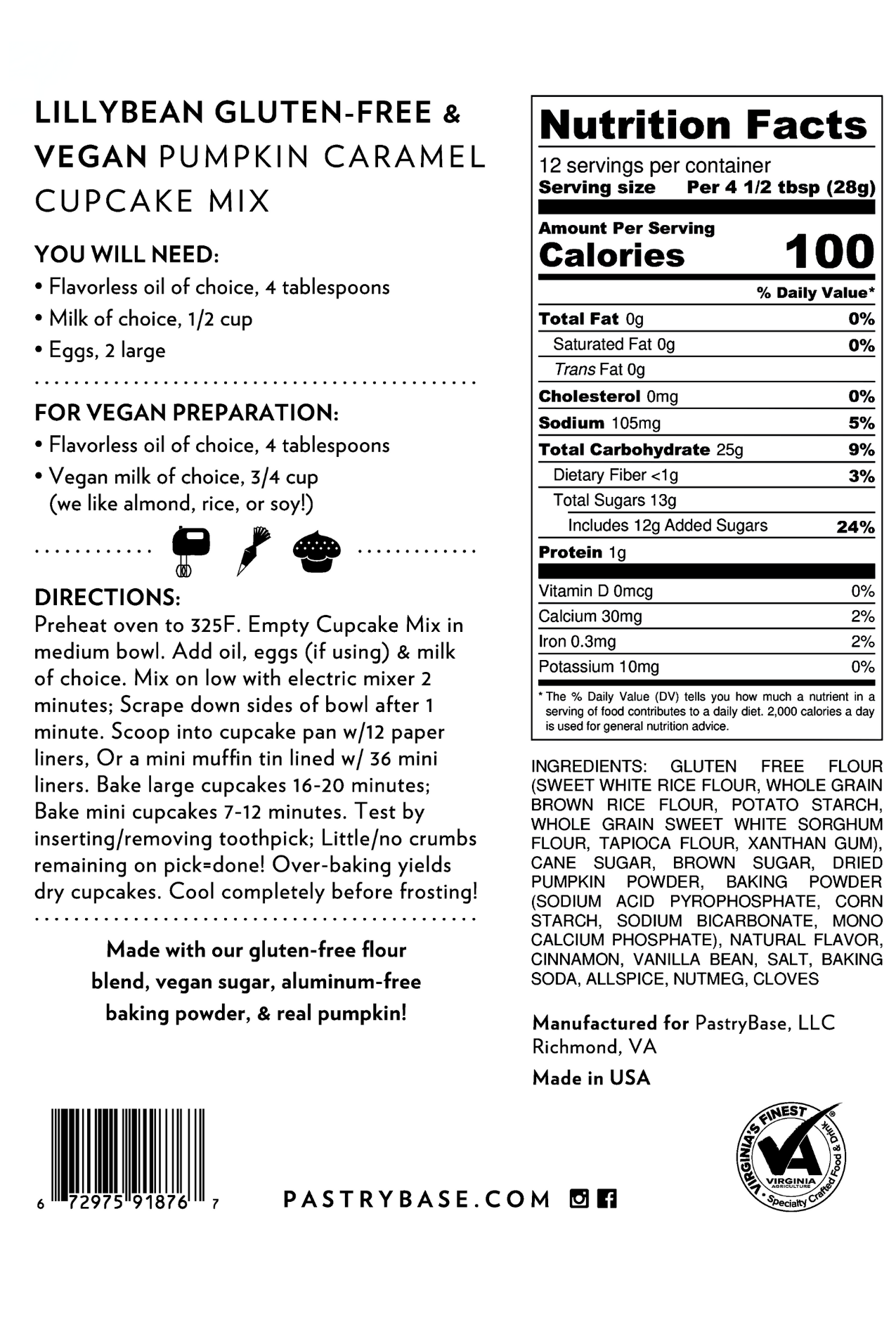 Whip up homemade, all-natural cupcakes in minutes with LillyBean’s Gluten-Free Pumpkin Spice Cupcake Mix! Just add your choice of milk and oil, and you’ll have a dozen fluffy cupcakes (or...