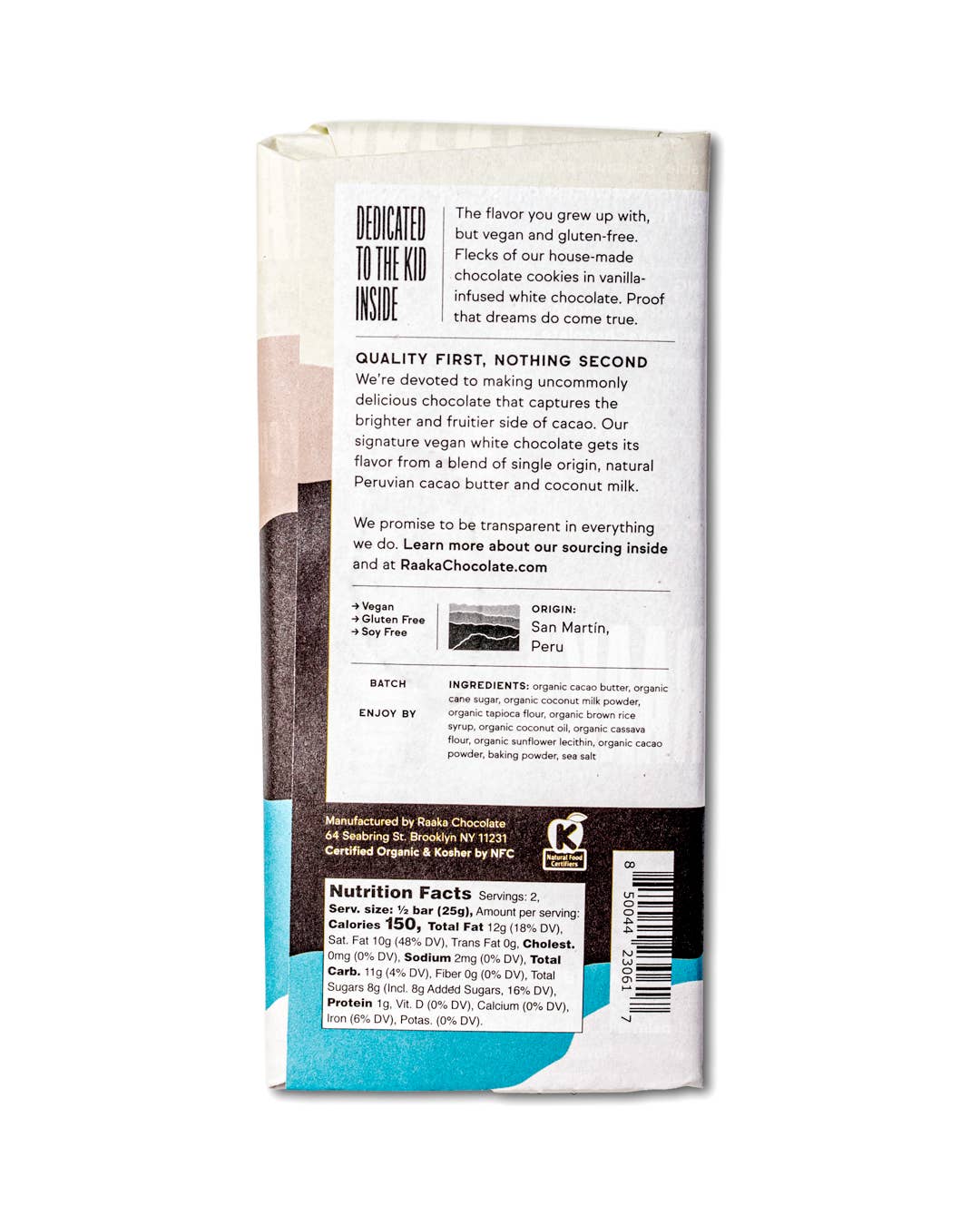 The flavor you grew up with, but vegan, organic, and gluten-free. Flecks of our house-made chocolate gluten-free cookies in vanilla-infused vegan coconut white chocolate. Sweet nostalgia and perfect for Halloween.