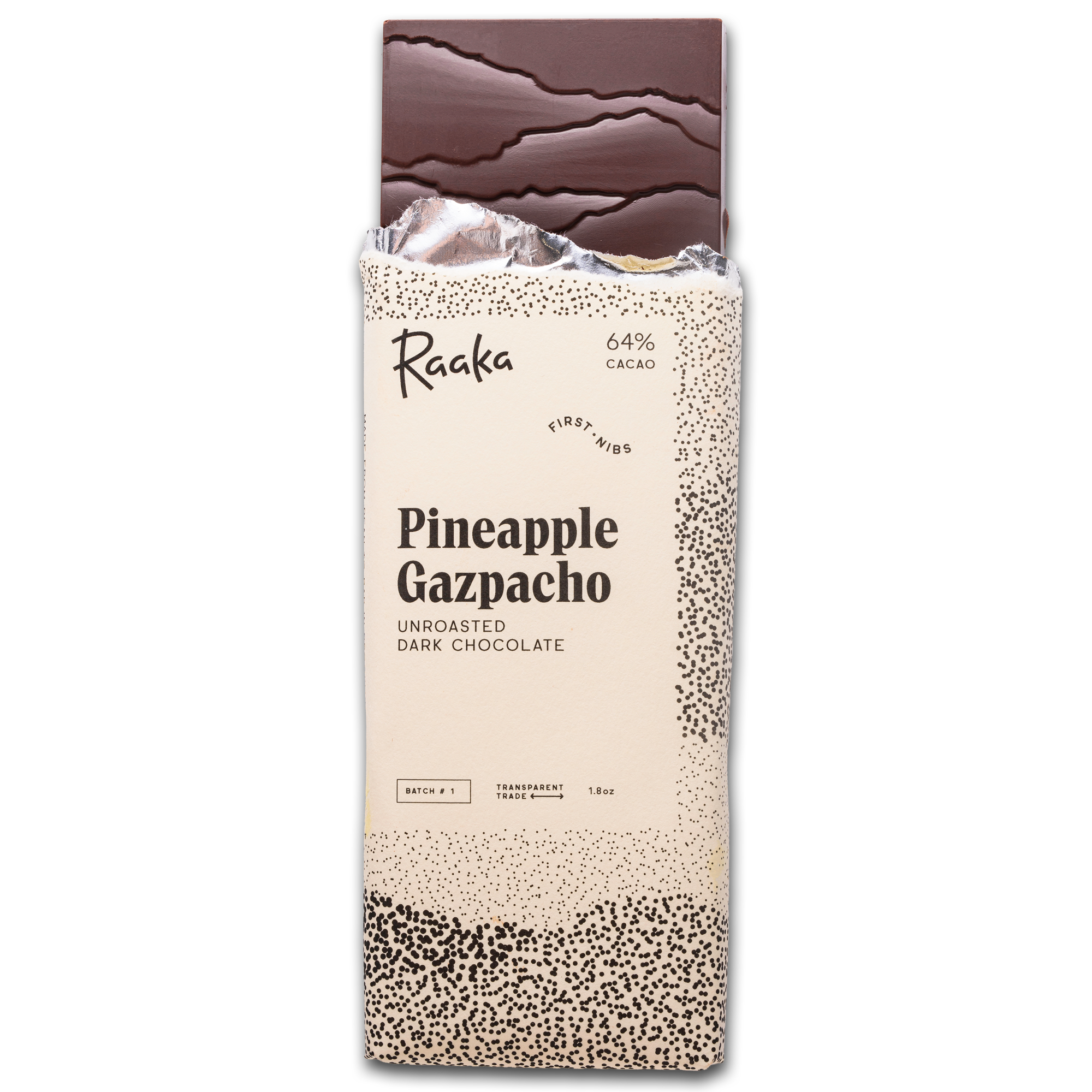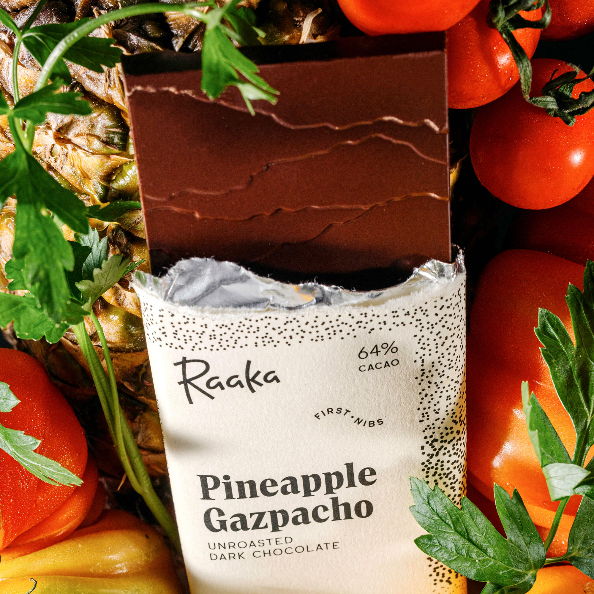 The ingredients may have you befuddled. Have no fear, this bar is tart, tangy, and zesty. You'll never forget it (in a good way). We make a Ugandan dark chocolate and infuse it with celery, pineapple, oregano, onion, parsley, and of course, tomato.
